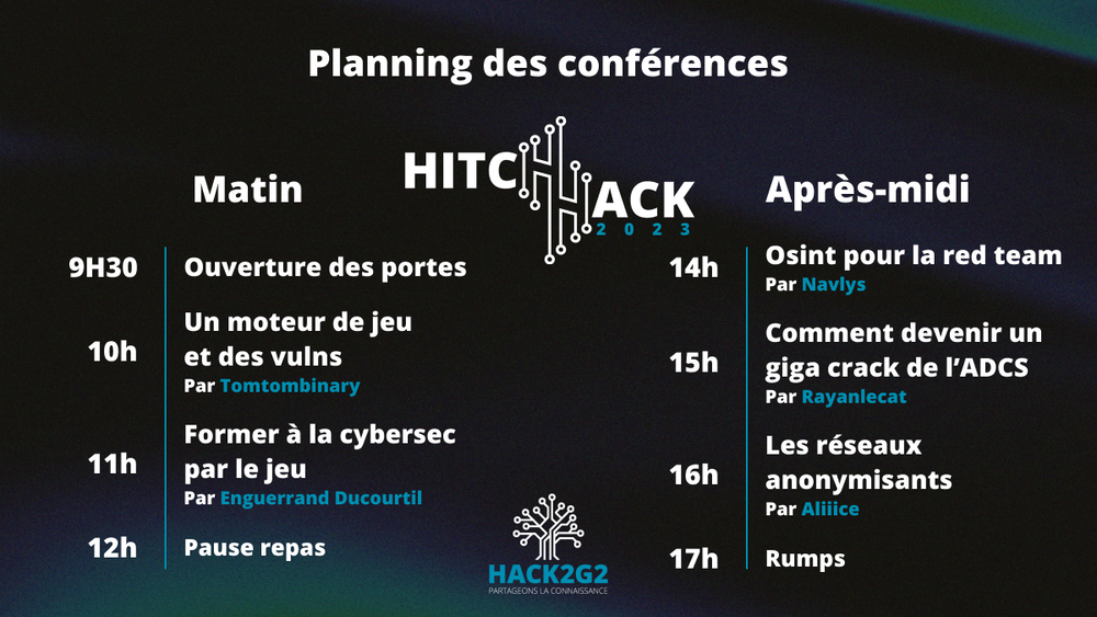 Le samedi 16 septembre 2023, l'association organise une nouvelle édition de sa journée publique de conférences, la HitchHack 2023.